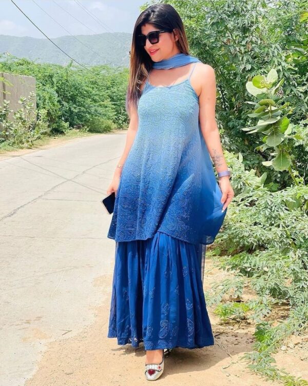 BEAUTIFULL CHIKAN WORKED SHADED COLORED SHARARA SET DUPATTA SET