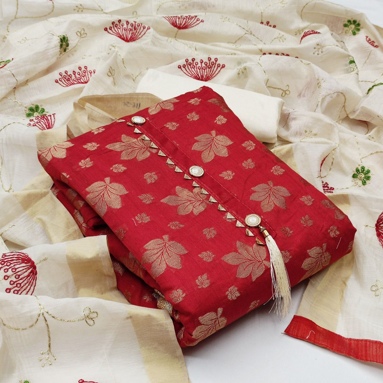 Top Fabrics:- Β *CHANDERI MODAL BOOTI KODDING WORK*
